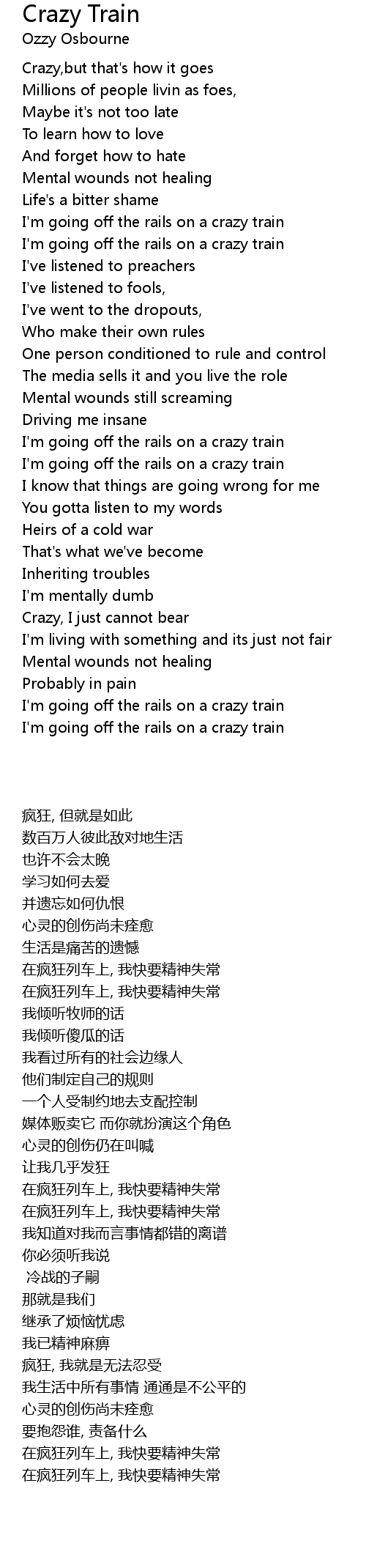 I'm going off the rails on a crazy train |