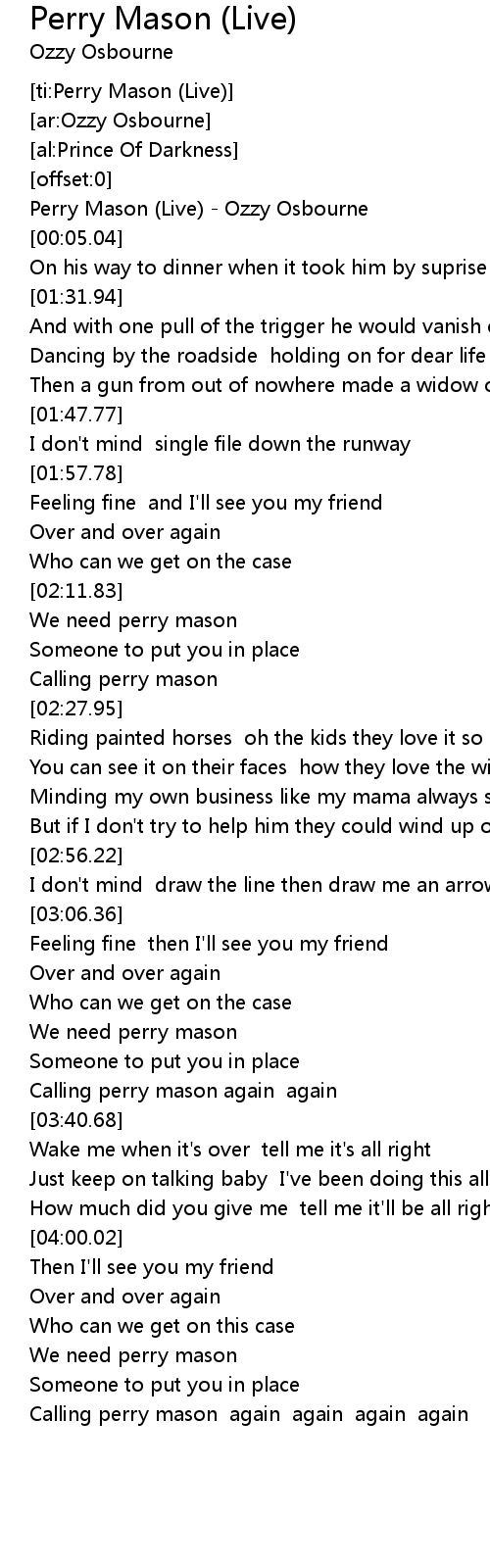 [00:00.89] Perry Mason (Live) - Ozzy Osbourne