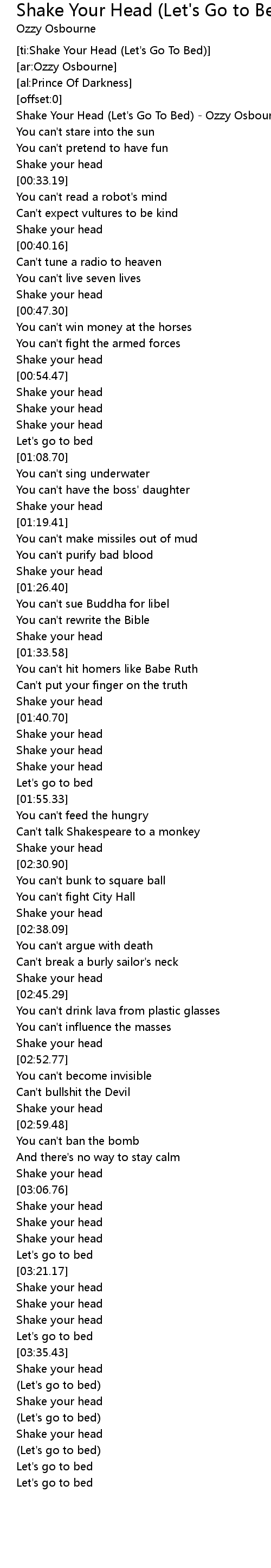 Shake Your Head (Let's Go To Bed) - Ozzy Osbourne |