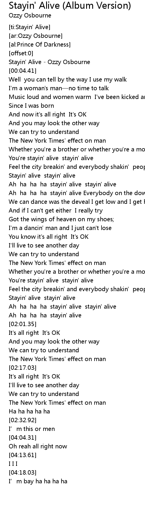| [00:00.70] | Stayin' Alive Ozzy Osbourne |