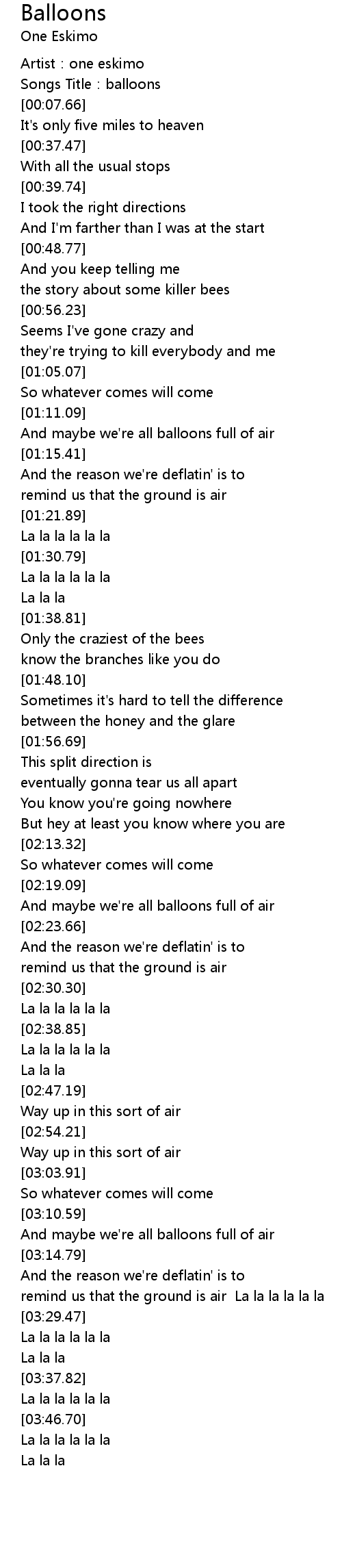 | [00:04.23] | Songs Title:balloons |