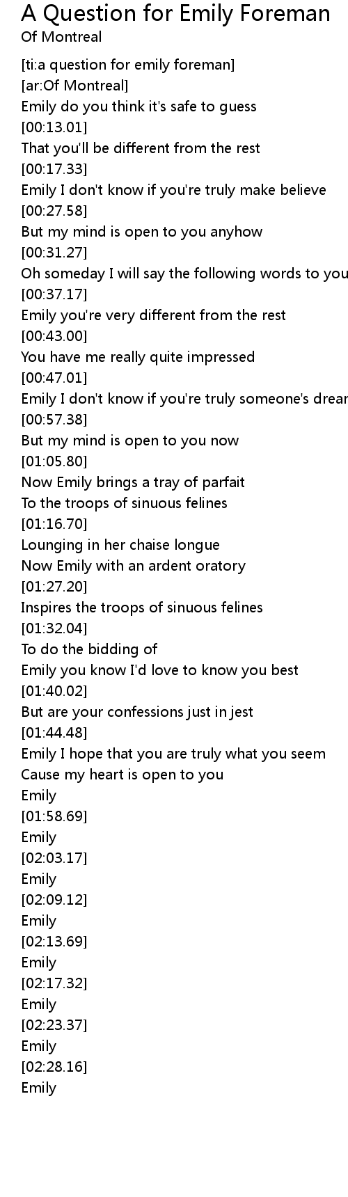[ti:a question for emily foreman] |
