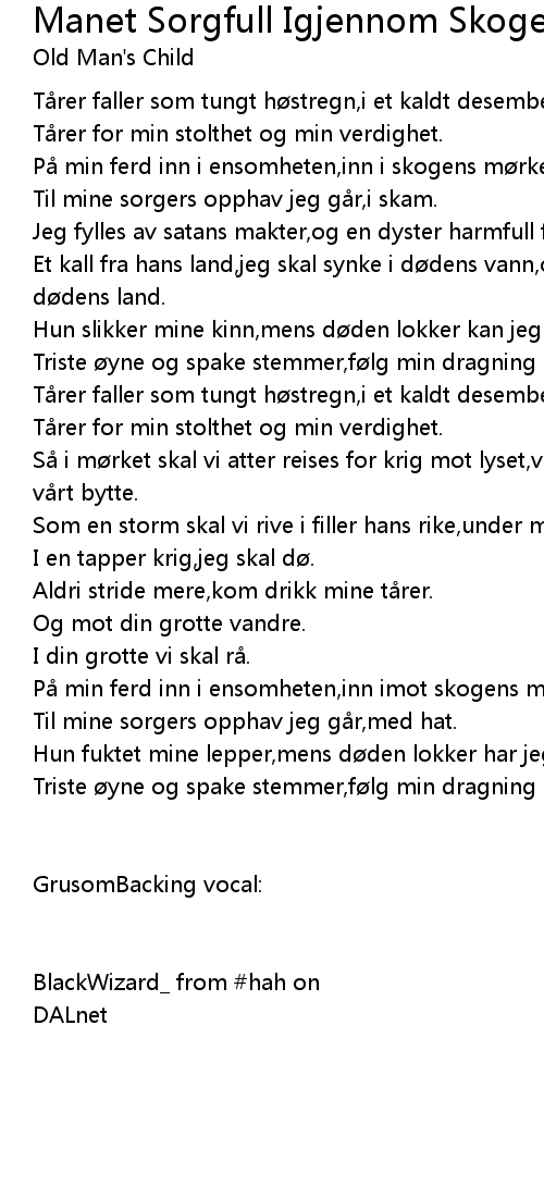 | Triste yne og spake stemmer, f lg min dragning mot gravens kalde m rke. | |