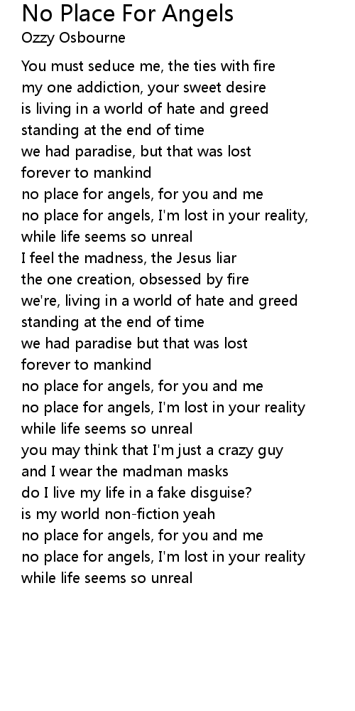 no place for angels, I'm lost in your reality, |