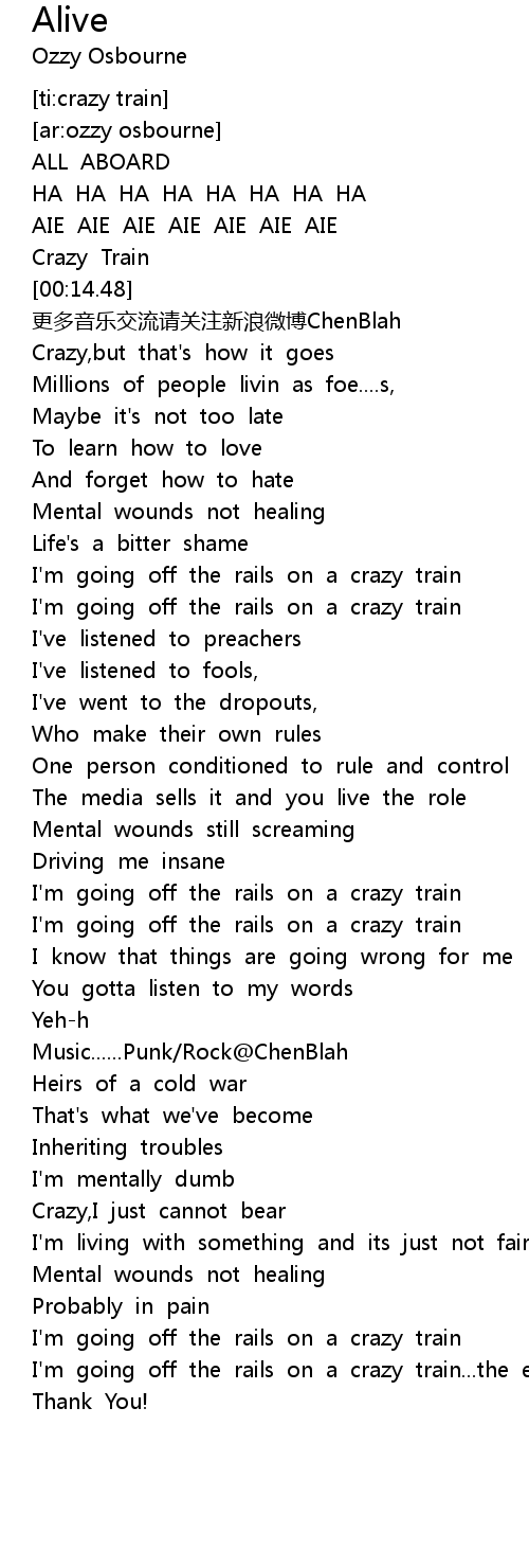 | [04:14.82] | I'm going off the rails on a crazy train...the end and Thank You! |