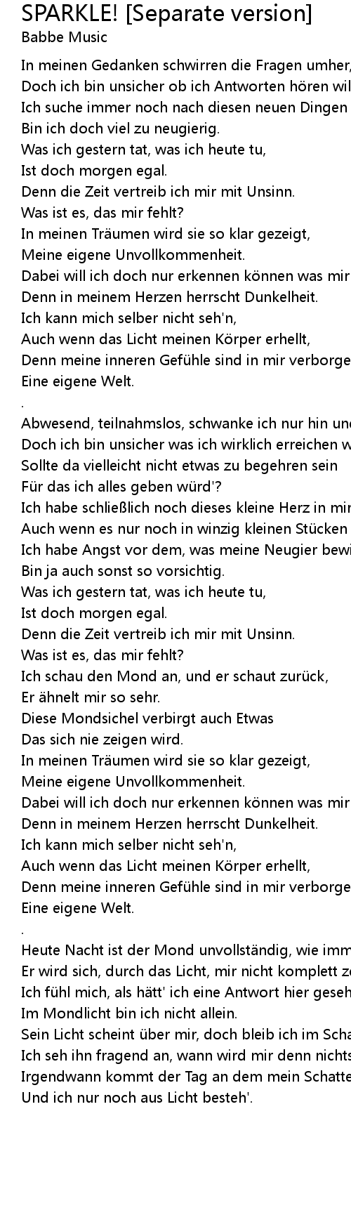 | [03:52.33] | Heute Nacht ist der Mond unvollst ndig, wie immer. |