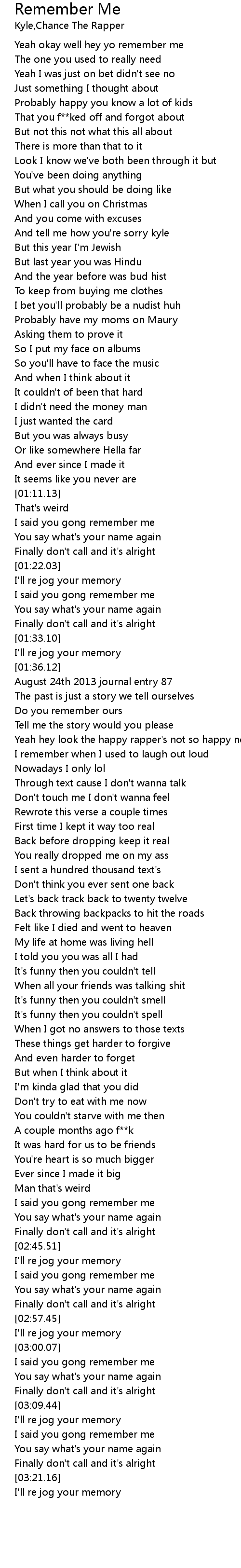 | [00:22.37] | Yeah okay well hey yo remember me |