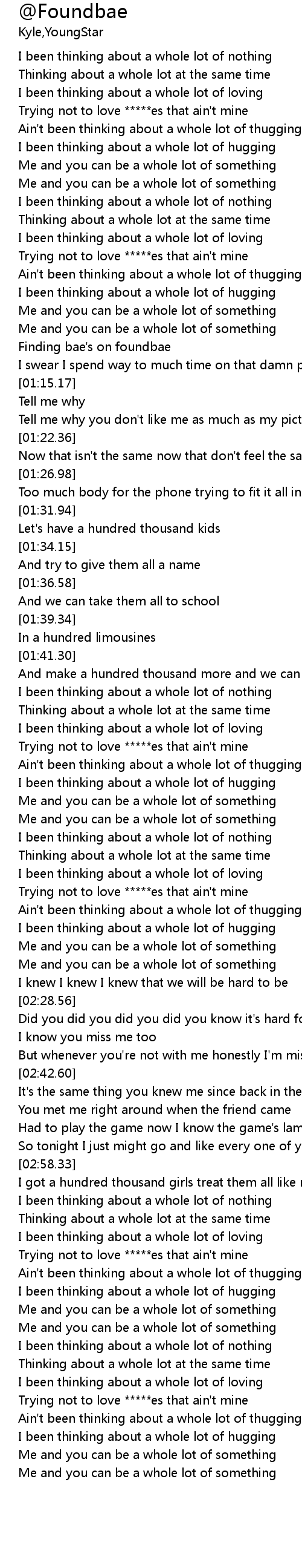 | [03:03.35] | I been thinking about a whole lot of nothing |