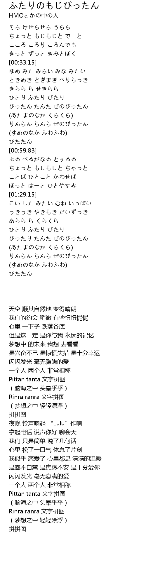 | [00:51.56] | りんらん らんら ぜのぴったん |