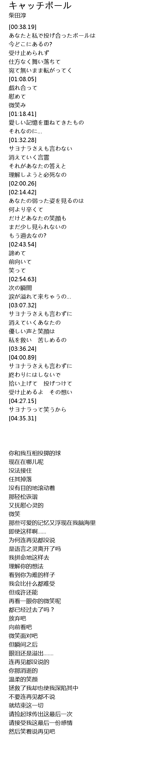 | [00:39.19] | あなたと私で投げ合ったボールは |