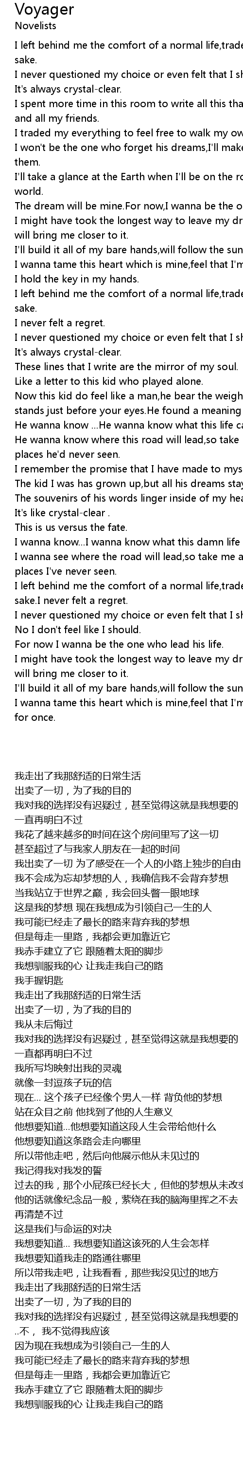 | [03:38.12] | I left behind me the comfort of a normal life,traded it all for my sake.I never felt a regret. |