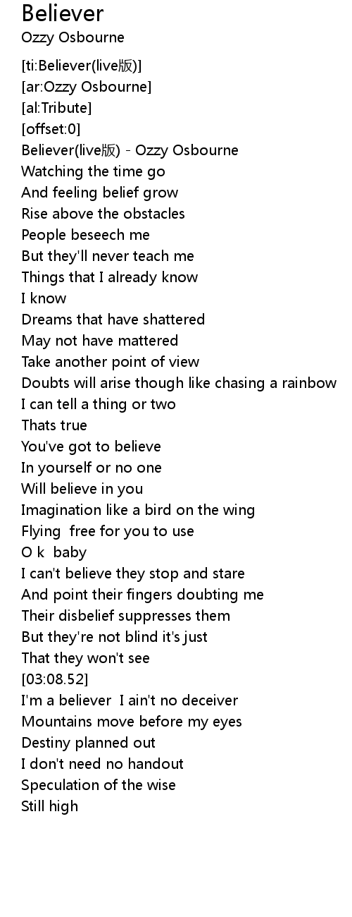 | [00:00.98] | Believer live ban Ozzy Osbourne |