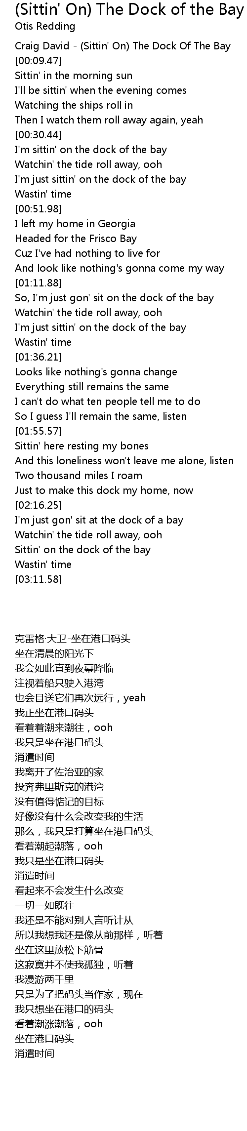 [02:18.16] I'm just gon' sit at the dock of a bay