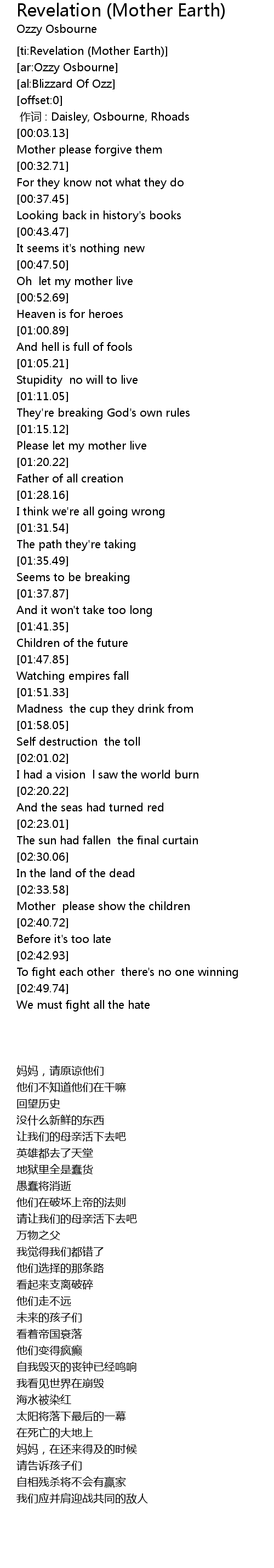 | [00:00.00] | zuo ci : Daisley, Osbourne, Rhoads |
