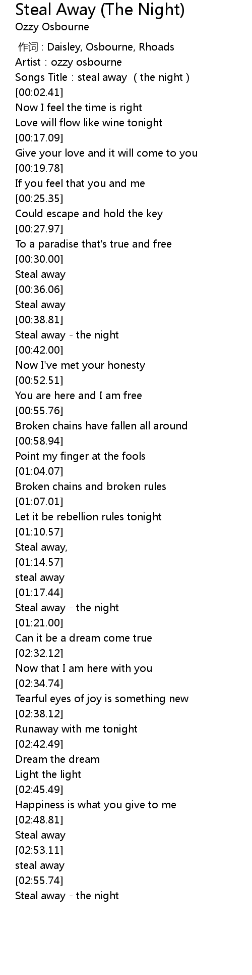| [00:00.00] | 作词 : Daisley, Osbourne, Rhoads |