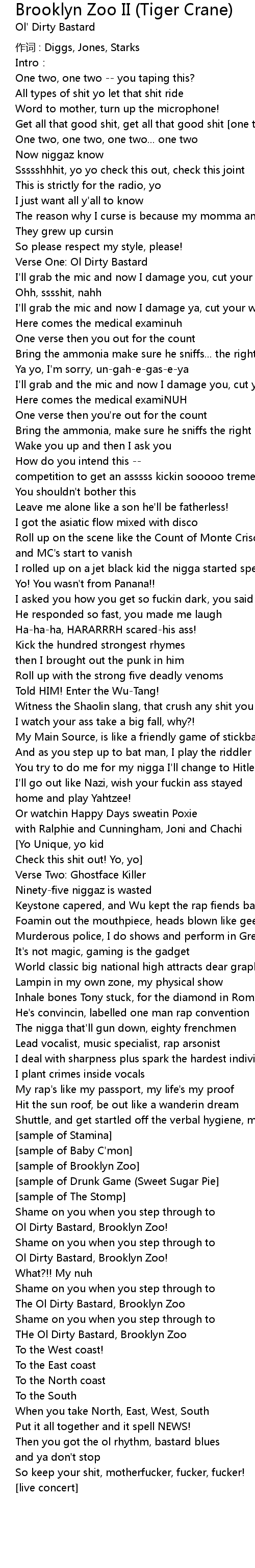 | The Ol Dirty Bastard, Brooklyn Zoo | |