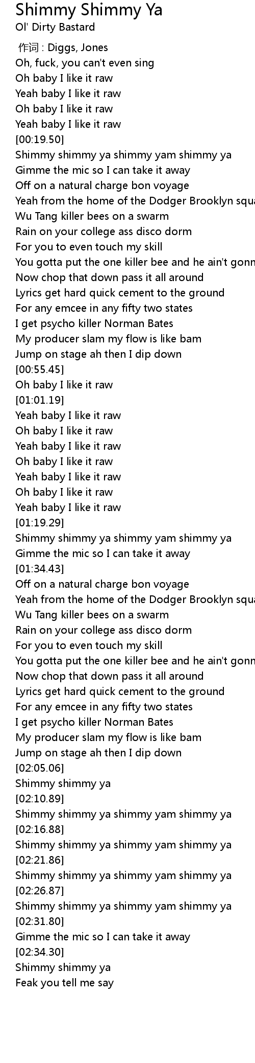 | [02:24.88] | Shimmy shimmy ya shimmy yam shimmy ya |