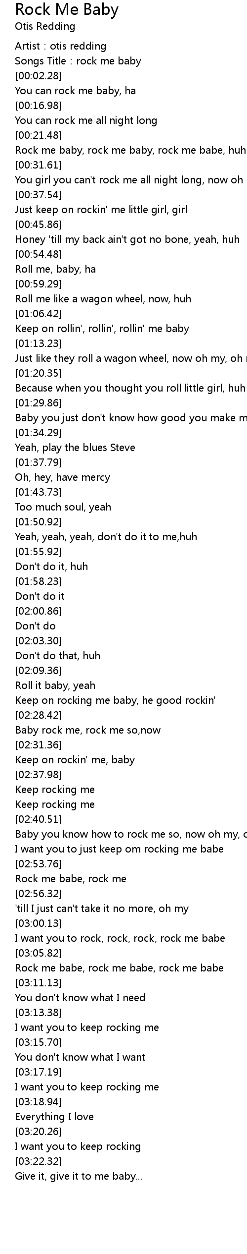 | [03:01.88] | I want you to rock, rock, rock, rock me babe |