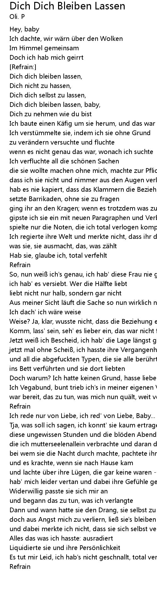 | doch aus Angst mich zu verliern, lie sie' s bleiben | |