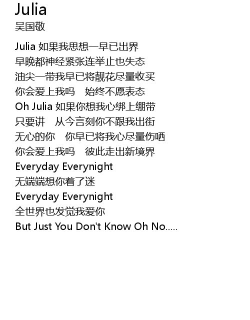 | Oh Julia rú guǒ nǐ xiǎng wǒ xīn bǎng shàng bēng dài | |