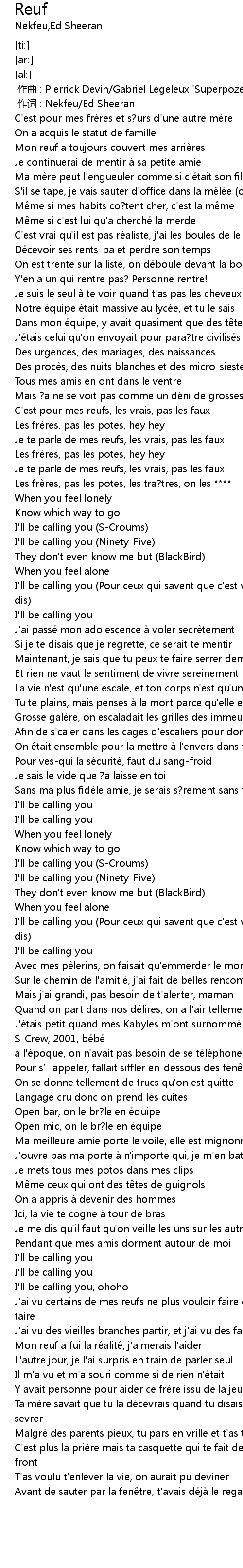 | [00:01.00] | zuò cí : Nekfeu Ed Sheeran |