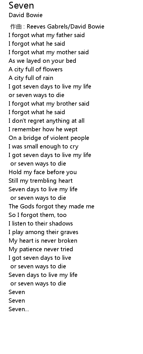 | [01:50.35] | Seven days to live my life |