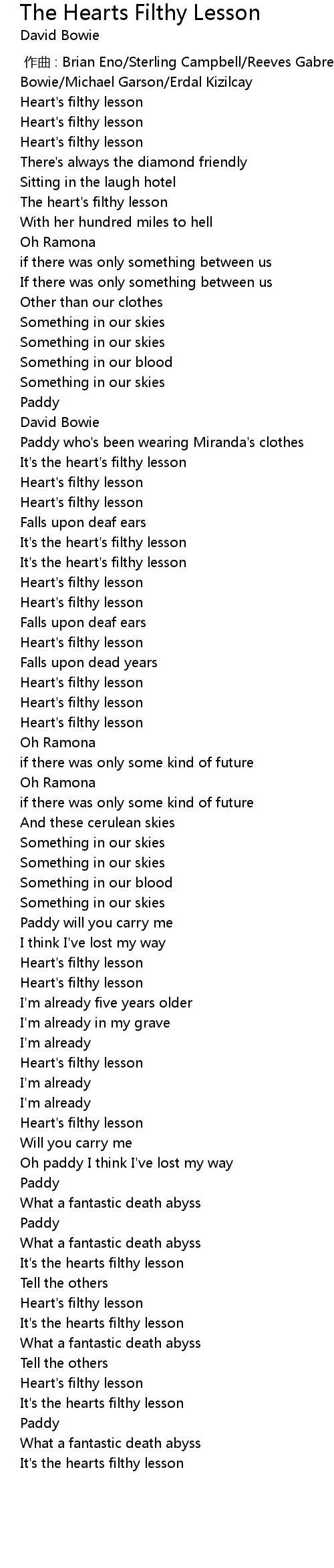 | [02:36.42] | Heart' s filthy lesson |
