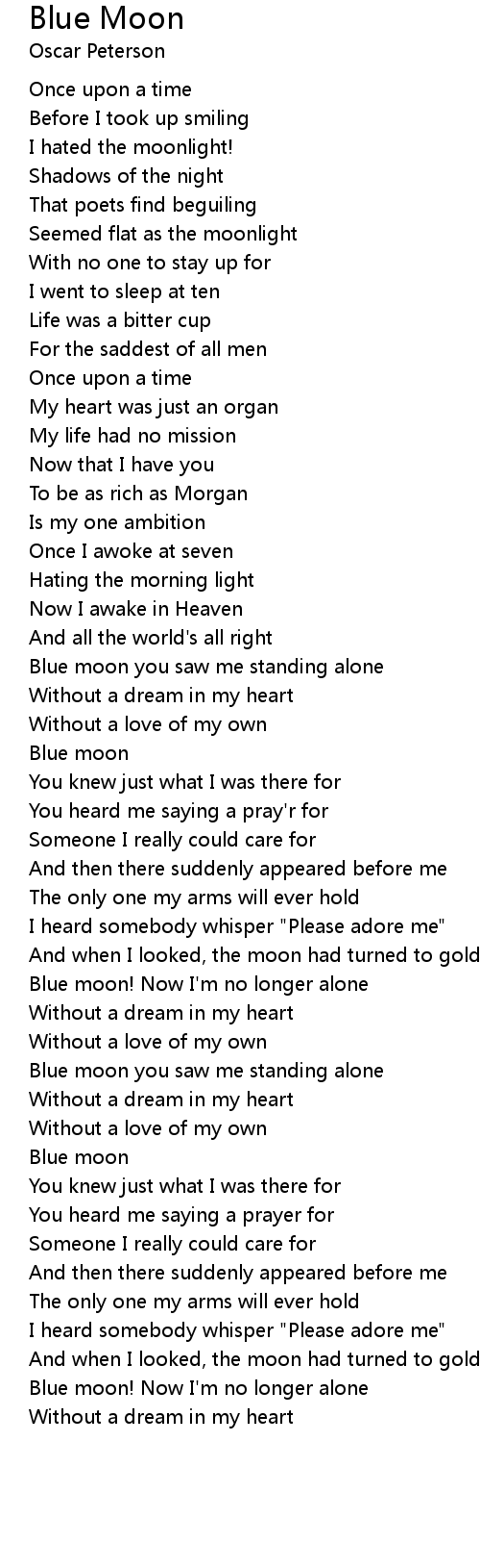 Blue moon you saw me standing alone
