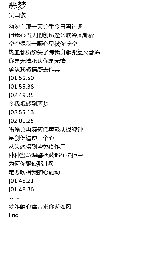 | [03:03.49][02:49.35][01:58.87][01:01.05] | 令我袛感到恶梦 令我袛感到恶梦 |