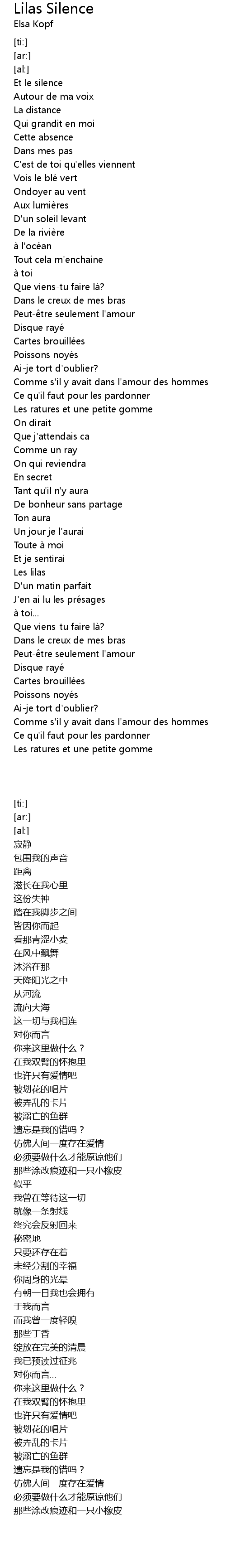 | [00:04.50] | Et le silence |