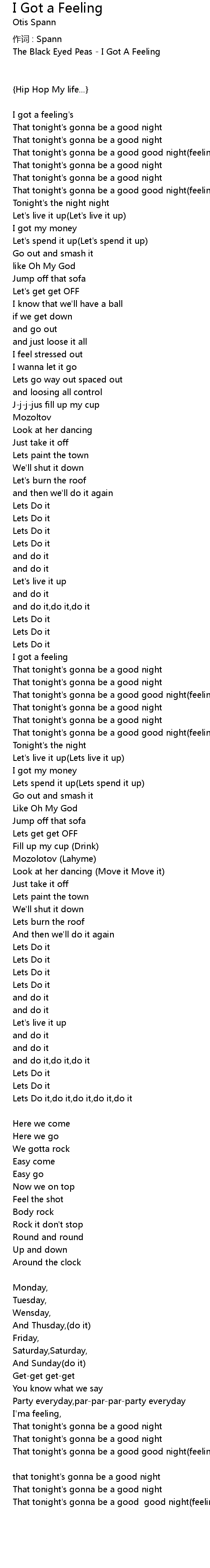 | I got a feeling's | |