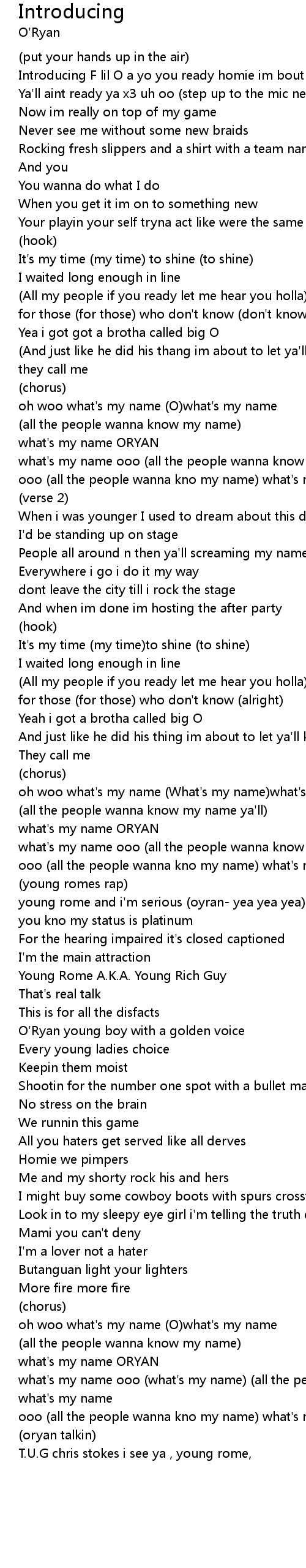 | ooo (all the people wanna kno my name) what's my name ORYAN (yea yea yeaaaa) | |