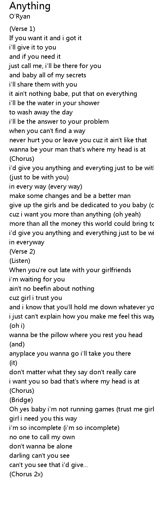 | give up the girls and be dedicated to you baby (cuz i want you) | |