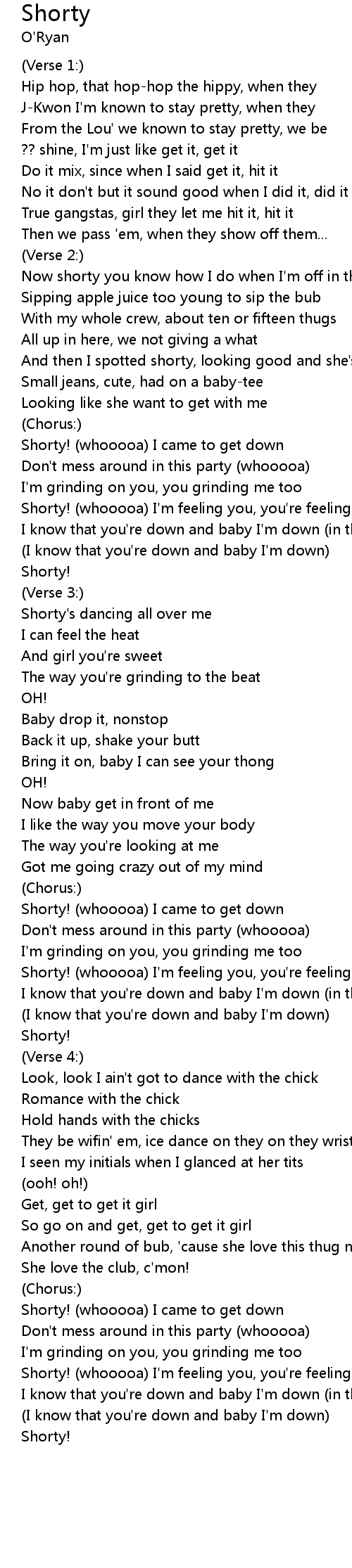 | Shorty! (whooooa) I'm feeling you, you're feeling me too | |