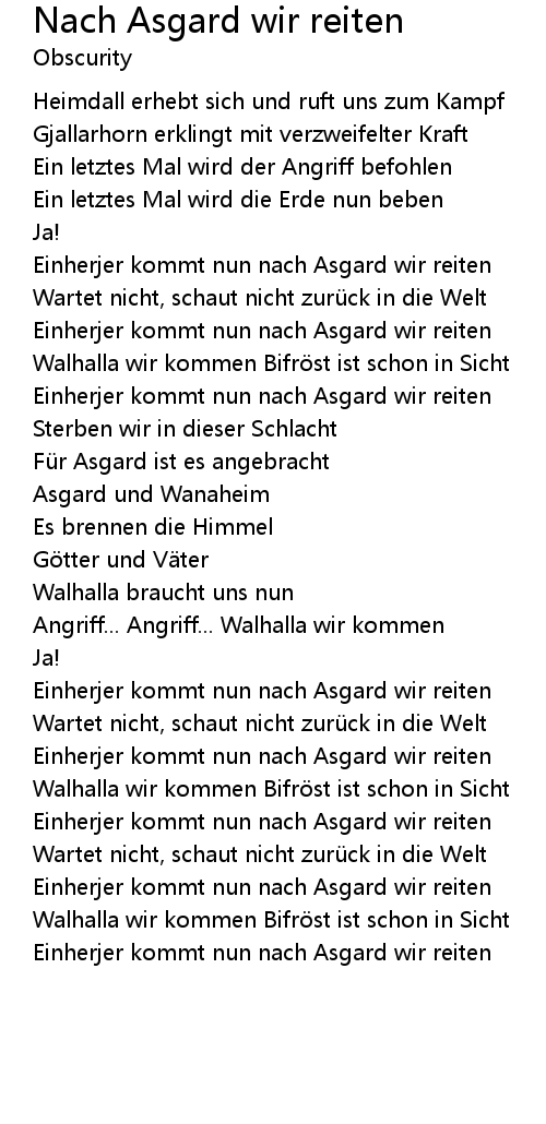 | Einherjer kommt nun nach Asgard wir reiten | |