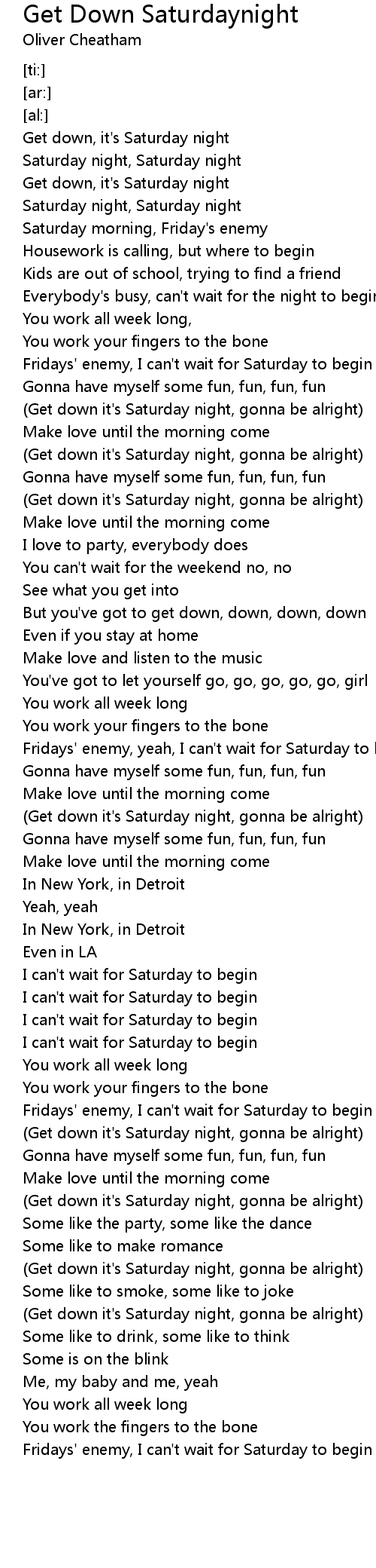 Fridays' enemy, yeah, I can't wait for Saturday to begin |