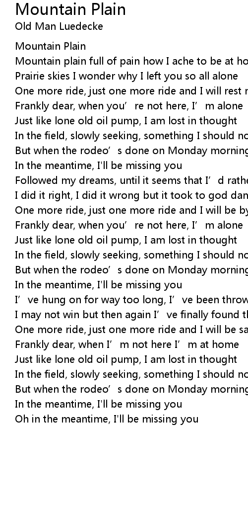 | Mountain plain full of pain how I ache to be at home | |
