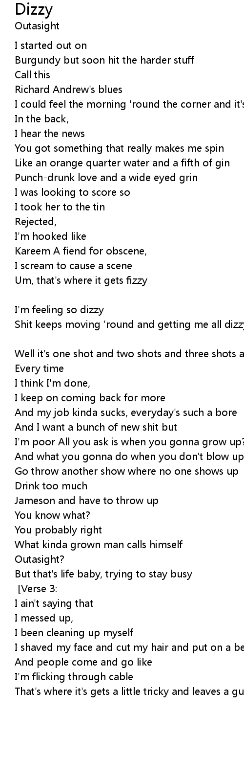 But all this damn talk got the boy feeling so dizzy [Hook] [Verse 3:] |