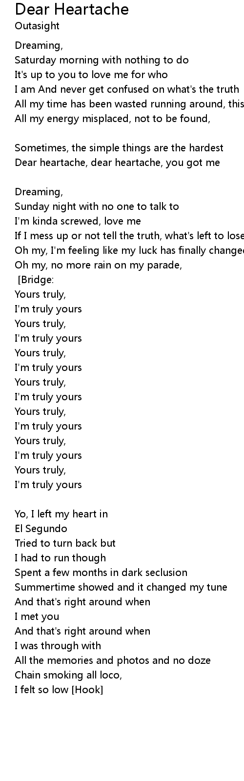 The simple things are the hardest, dear heartache [Verse 2:] |