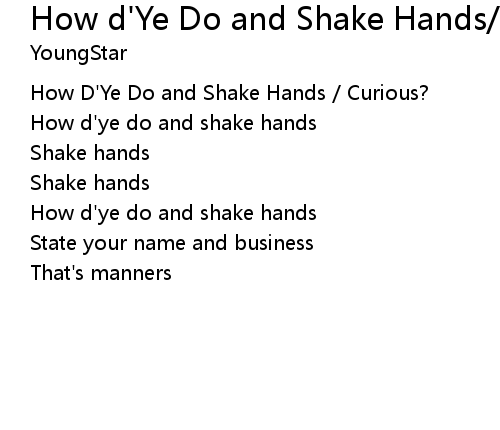 | Song | How d'Ye Do and Shake Hands/Curious? |