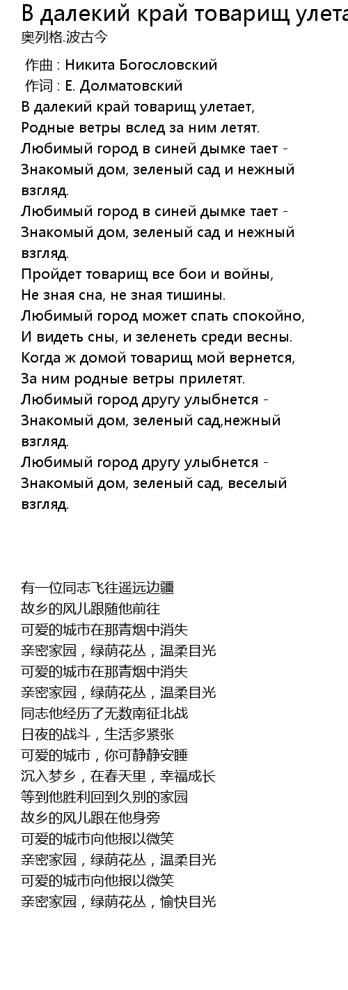 В далекий край товарищ улетает, |