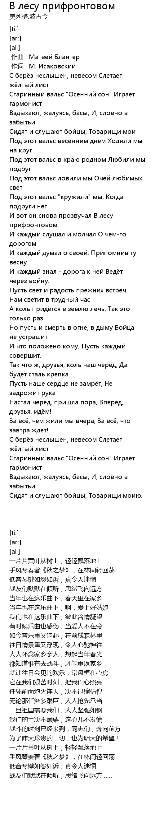 И вот он снова прозвучал В лесу прифронтовом |
