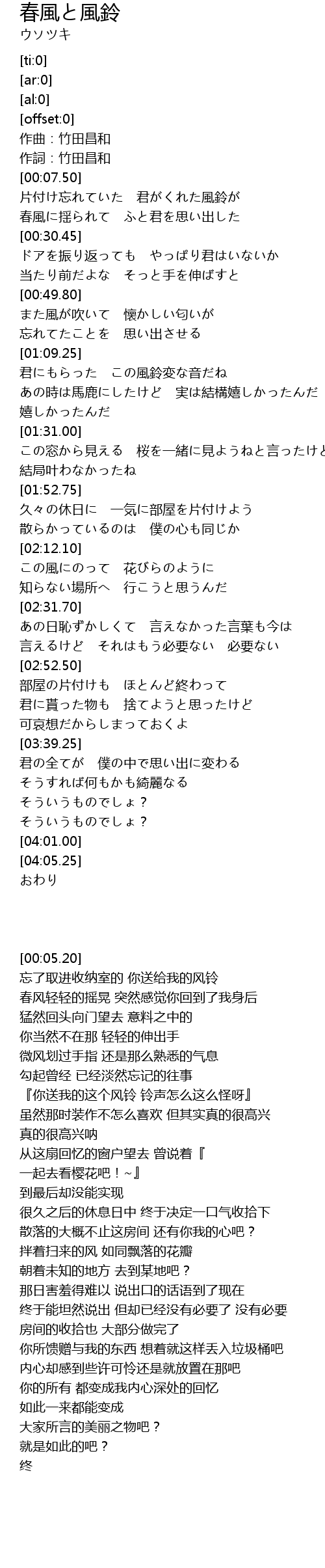 | [00:21.63] | 春風に揺られて ふと君を思い出した |