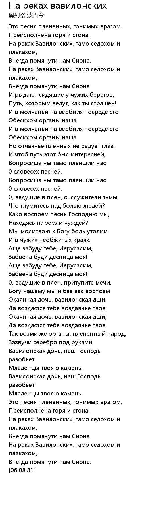 На реках вавилонских  Lyrics
