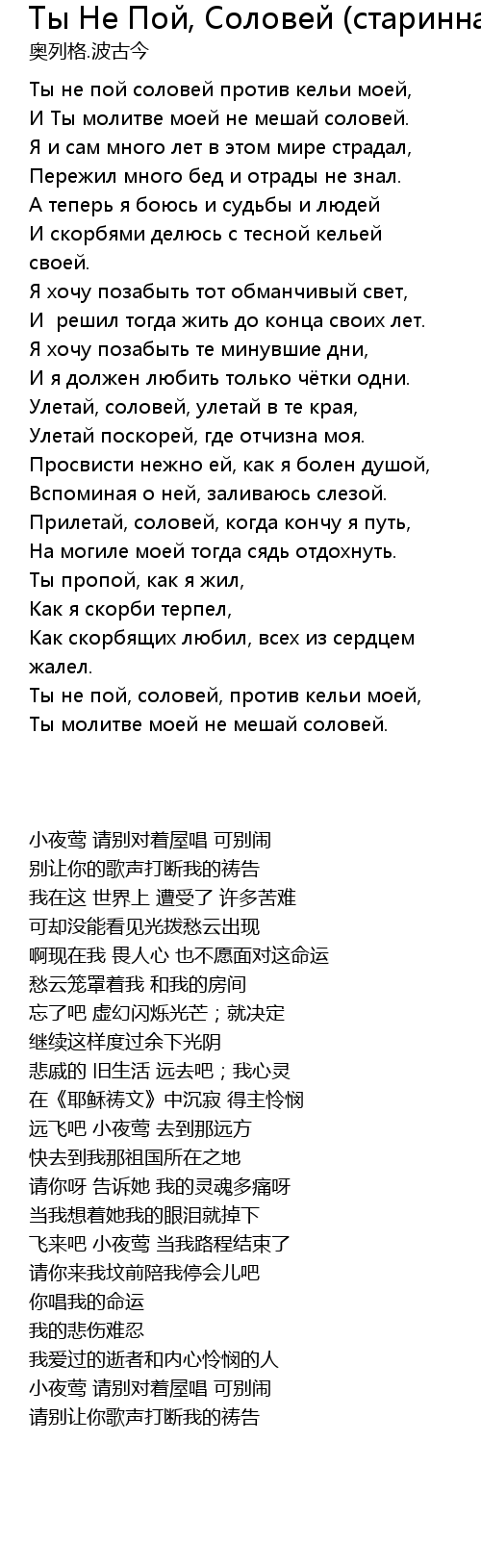 Ты молитве моей не мешай соловей. |