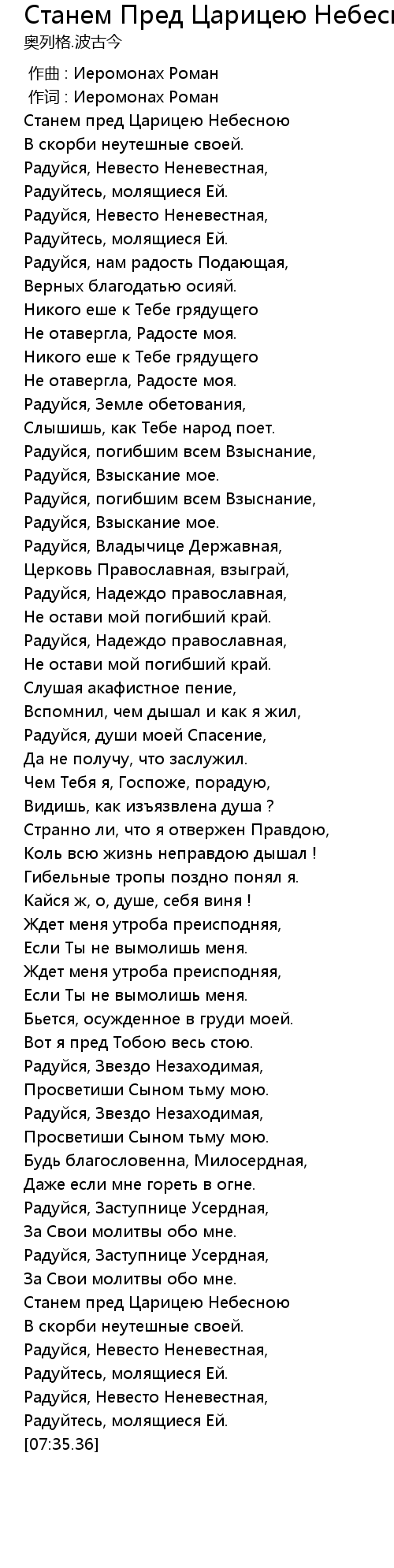 作词 : Иеромонах Роман |