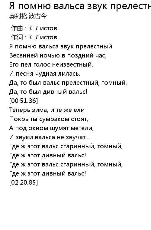 Я помню вальса звук прелестный  Lyrics