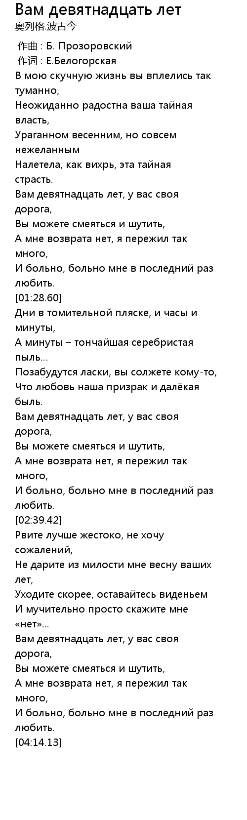 Вам девятнадцать лет, у вас своя дорога, |