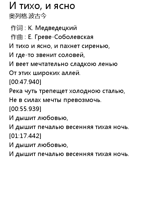 | [00:00.000] | 作词 : К. Медведецкий |