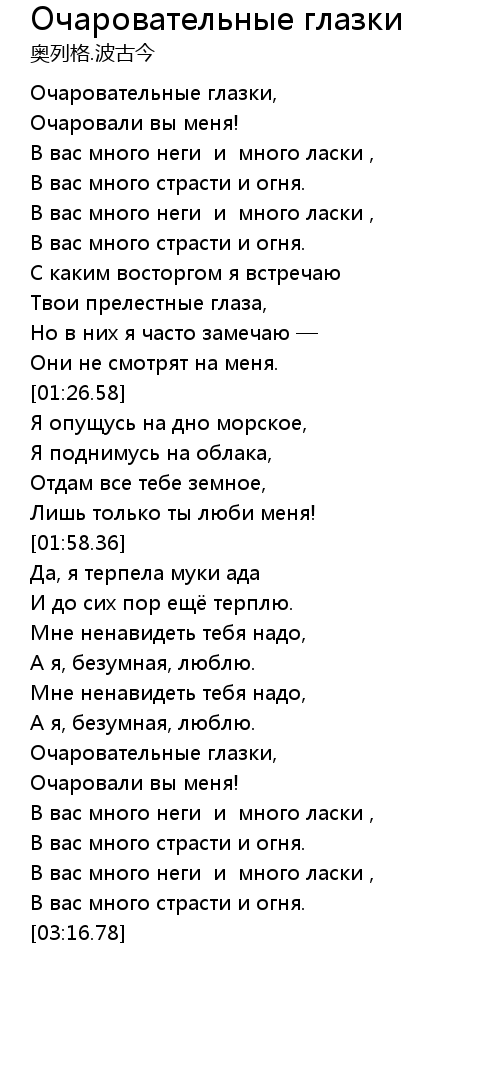 Очаровательные глазки, |